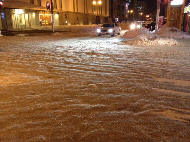 たまたま出張の数日前にバーゲンで買っていたスノーブーツを履いて行きましたが、意味なし。